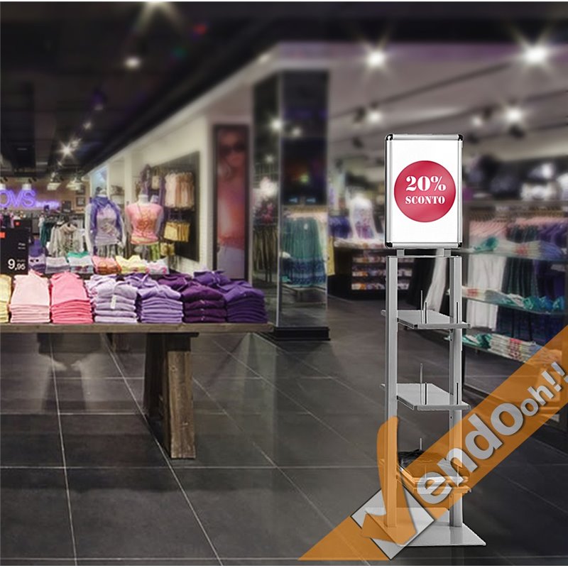 Espositore da pavimento autoportante in alluminio anodizzato con