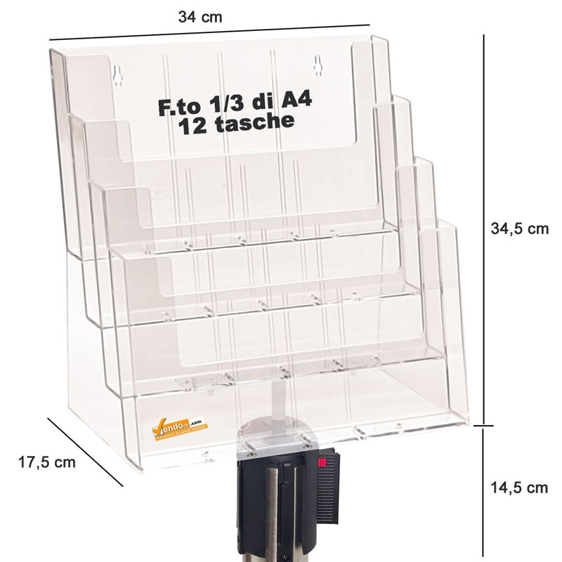 con staffa di sostegno/attacco in metallo nero per colonnina Dimensione espositore senza sostegno: