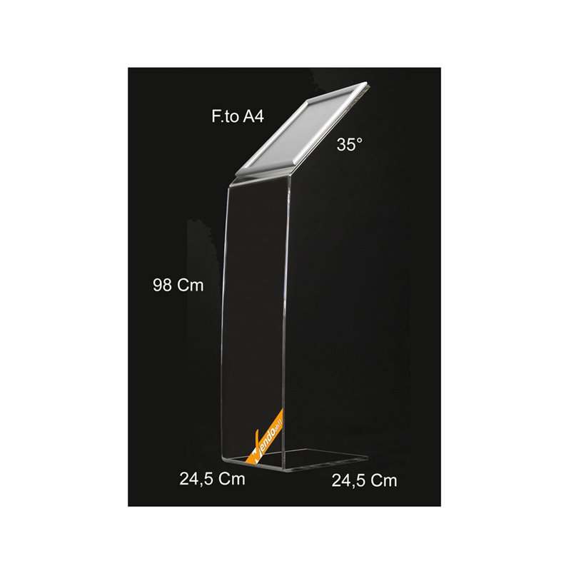 COMPLETAMENTE TRASPARENTE con base a "L" con: -1 cornice a scatto porta avvisi formato A4 Verticale