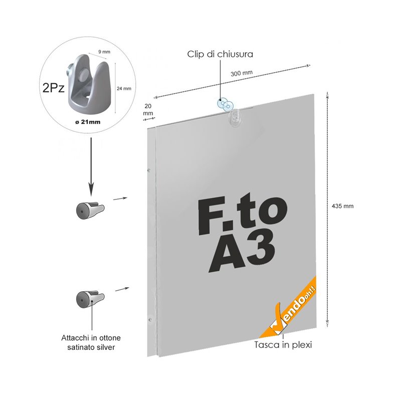 - f.to. A5 verticale 170x225 mm Art.LPBA5V - f.to. A5 orizzontale 230x165 mm Art.LPBA5H - f.to. A4 verticale 230x315 mm Art.LPBA4V - f.to. A4 orizzontale 320x225 mm Art.LPBA4H - f.to. A3 verticale 320x435 mm Art.LPBA3V - f.to. A3 orizzontale 440x315 mm Art.LPBA3H Disponibili anche solo la coppia di distanziali: