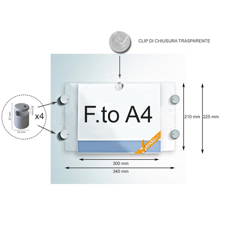 TARGA PANNELLO TABELLA PORTA AVVISI DA PARETE A4 ORIZZONTALE ATTACCHI COMPRESI